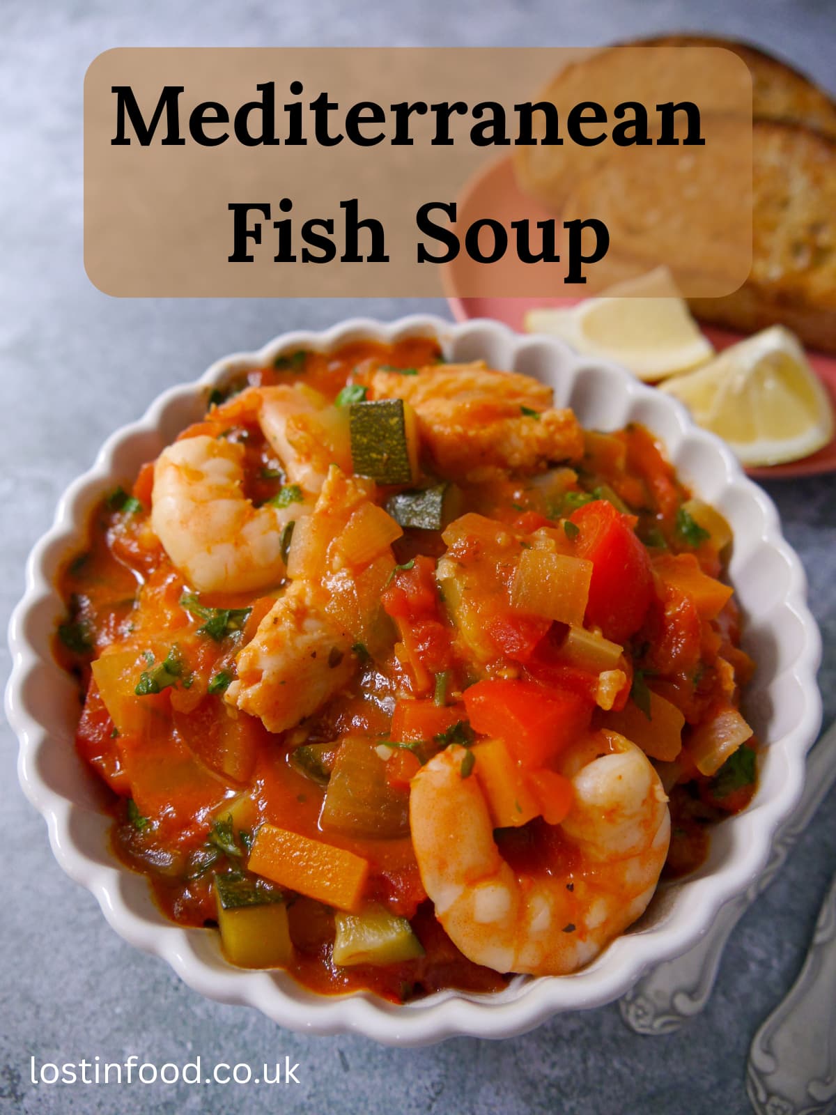 My quick and easy Mediterranean fish soup recipe is a healthy bowl of comfort food. Packed with protein rich seafood, nutritious vegetables and fresh herbs, this soup is both flavourful and warming.